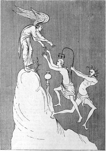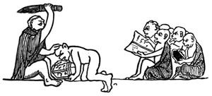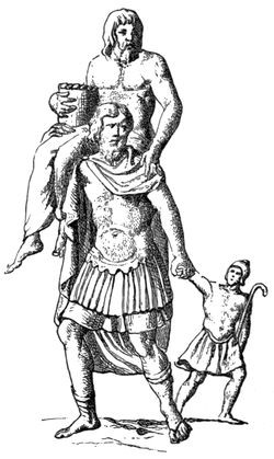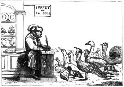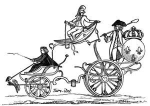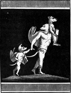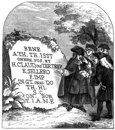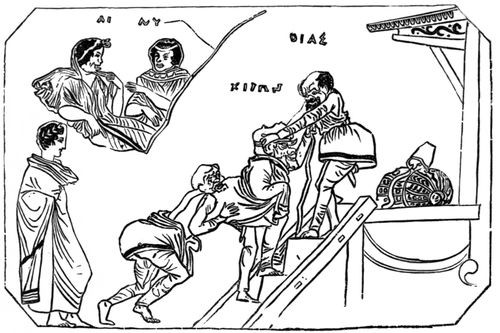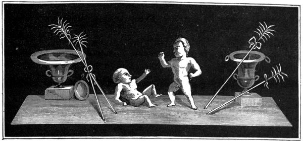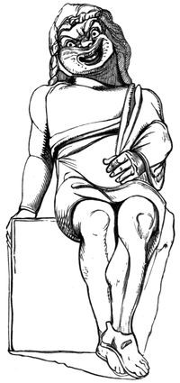 The great living authorities upon this branch of art are two in number—one English, and one French—to both of whom I am greatly indebted. The English author is Thomas Wright, M.A., F.S.A., etc., whose "History of Caricature and the Grotesque" is well known among us, as well as his more recent volume upon the incomparable caricaturist of the last generation, James Gillray. The French writer is M. Jules Champfleury, author of a valuable series of volumes reviewing satiric art from ancient times to our own day, with countless illustrations. No one has treated so fully or so well as he the caricature of the Greeks and Romans. Many years ago, M. Champfleury began to illustrate this part of his subject in the Gazette des Beaux Arts, and his contributions to that important periodical were the basis of his subsequent volumes. He is one of the few writers on comic matters who have avoided the lapse into catalogue, and contrived to be interesting.