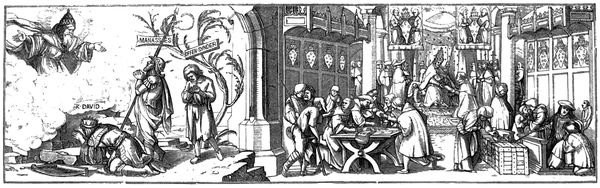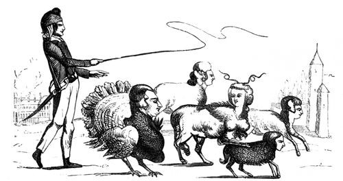 There is not much to be said upon the subject treated in this volume. When I was invited by the learned and urbane editor of Harper's Monthly to furnish a number of articles upon caricature, I supposed that the work proposed would be a relief after labors too arduous, too long continued, and of a more serious character. On the contrary, no subject that I ever attempted presented such baffling difficulties. After ransacking the world for specimens, and collecting them by the hundred, I found that, usually, a caricature is a thing of a moment, and that, dying as soon as its moment has passed, it loses all power to interest, instantly and forever. I found, too, that our respectable ancestors had not the least notion of what we call decency. When, therefore, I had laid aside from the mass the obsolete and the improper, there were not so very many left, and most of those told their own story so plainly that no elucidation was necessary. Instead of wearying the reader with a mere descriptive catalogue, I have preferred to accompany the pictures with allusions to contemporary satire other than pictorial.