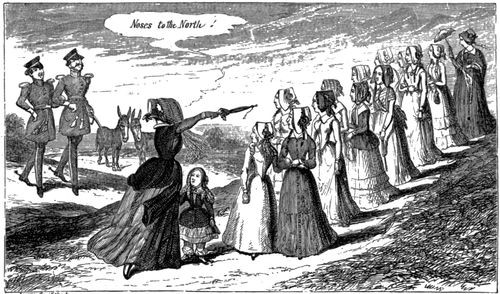 There must be something precious in caricature, else the enemies of truth and freedom would not hate it as they do. Some of the worst excesses and perversions of satiric art are due to that very hatred. Persecuted and repressed, caricature becomes malign and perverse; or, being excluded from legitimate subjects, it seems as if it were compelled to ally itself to vice. We have only to turn from a heap of French albums to volumes of English caricature to have a striking evidence of the truth, that the repressive system represses good and develops evil. It is the "Censure" that debauches the comic pencil; it is freedom that makes it the ally of good conduct and sound politics. In free countries alone it has scope enough, without wandering into paths which the eternal proprieties forbid. I am sometimes sanguine enough to think that the pencil of the satirist will at last render war impossible, by bringing vividly home to all genial minds the ludicrous absurdity of such a method of arriving at truth. Fancy two armies "in presence." By some process yet to be developed, the Nast of the next generation, if not the admirable Nast of this, projects upon the sky, in the sight of the belligerent forces, a picture exhibiting the enormous comicality of their attitude and purpose. They all see the point, and both armies break up in laughter, and come together roaring over the joke.
