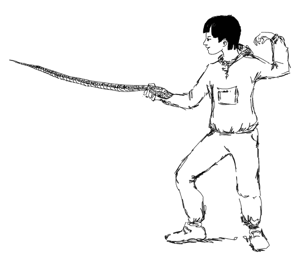 Змея никак не отреагировала. Оставалось заставить себя поднять пару гадюк. Вид этих «палок» был настолько нелеп и смешон, что уже в следующую минуту Антон, сделав совершенно мушкетерский реверанс, подскочил к Угоше, ткнул в нее гадючьим хвостом, удерживая беднягу за голову, крикнул: «Сударыня, защищайтесь» и с криком японского самурая понесся по острову.