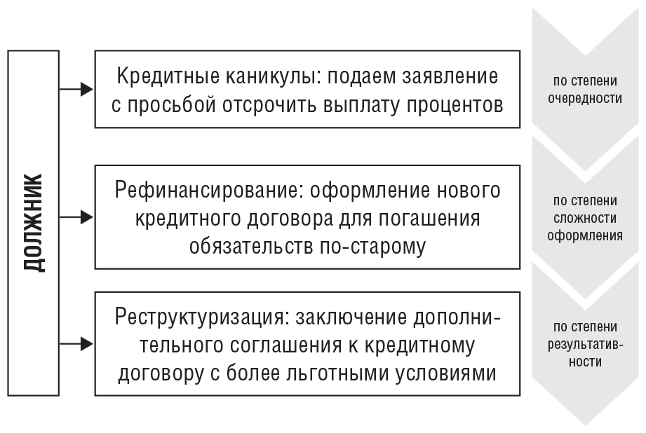 Вот и перед вами стоит выбор дальнейших шагов к разрешению вашей финансовой ситуации. Мы попытались схематично отразить базовые пути решения проблемы в приведенной ниже схеме.