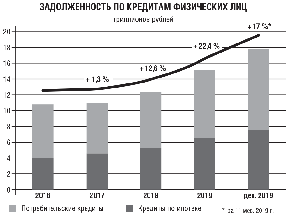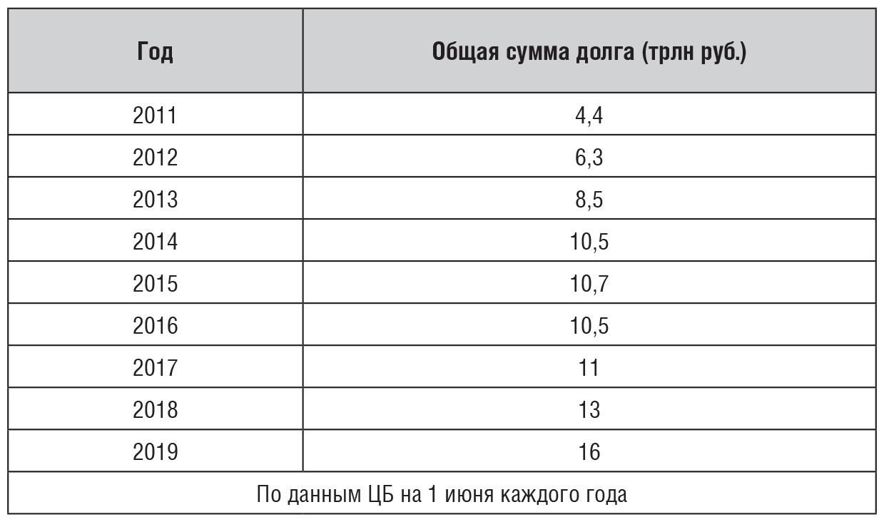 Как растет долг россиян перед банками