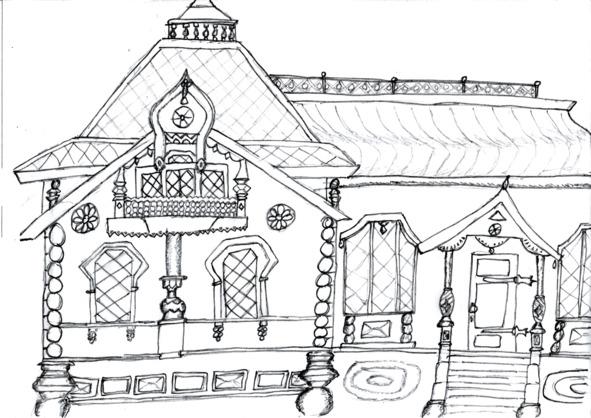 Но вот небольшой изгиб опушки остался позади и… Женя открыла рот от удивления. Перед стоял самый настоящий сказочный терем. Бревенчатые стены, резные наличники, крашенные затейливой резьбой столбы крыльца… Но самым загадочным было не это. Небо приобрело сиреневые оттенки вечера, а солнце уже висело за спиной Жени, хотя девочка помнила, что утром, когда она шла по лесу солнце было спереди. Значит уже вечер и она здесь уже целый день! Она растерянно огляделась вокруг…