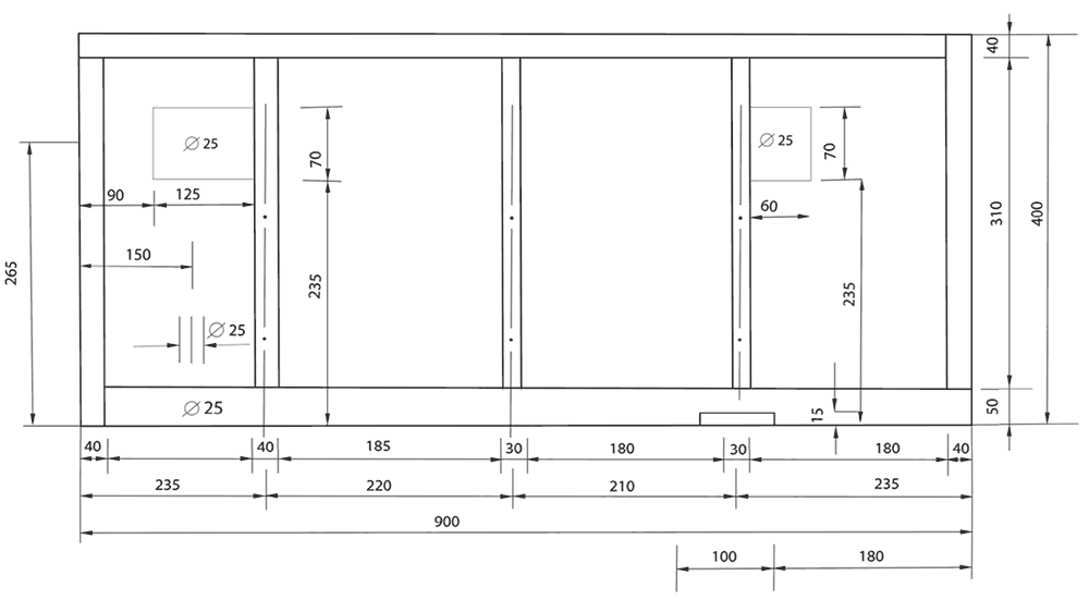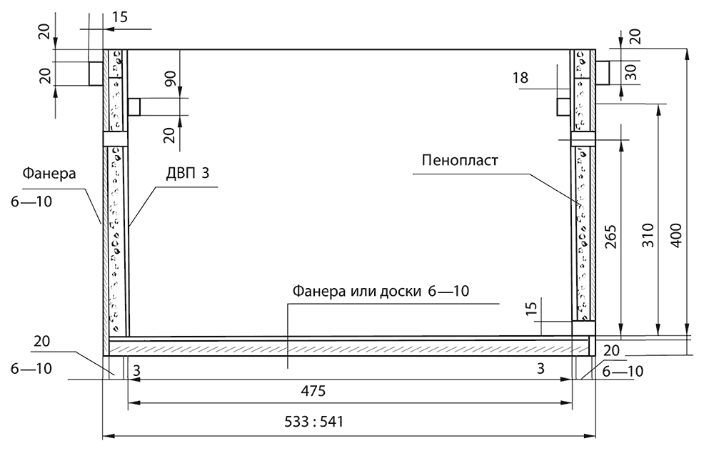 Схема корпуса улья № 4. Все измерения указаны в миллиметрах