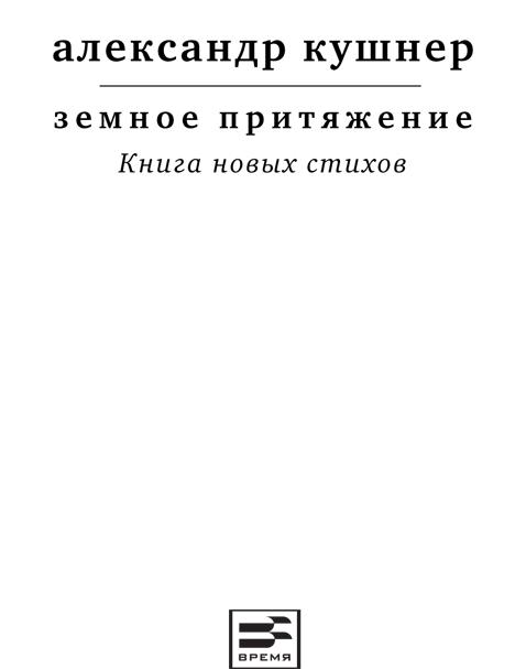 Александр Кушнер — автор десятков книг, лауреат многих литературных премий. Иосиф Бродский назвал А. Кушнера «одним из лучших лирических поэтов ХХ века». По словам самого поэта, «книга стихов дает возможность поэту, в обход эпического жанра, поэмы, повествовательного сюжета, создать целостную картину мира из осколков ежедневных впечатлений… это пылающий кусок жизни, отчет лирического поэта за несколько лет счастливого труда». «Земное притяжение» — книга новых стихов, написанных за последние три года.