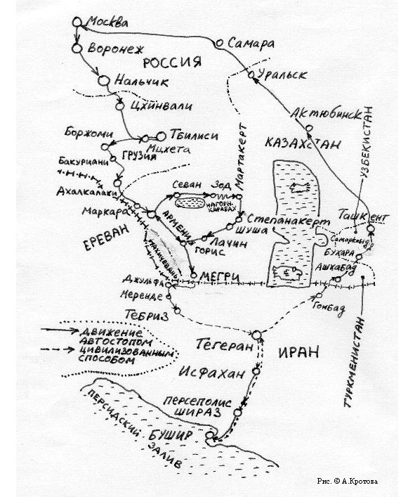Автостопом из Москвы через Кавказ, Иран в 1997 году и обратно домой через Туркмению, Узбекистан и Казахстан