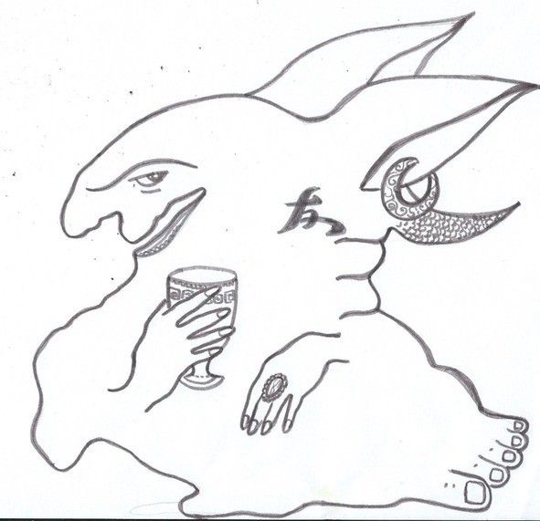 Внимание сразу приковывают руки Дрях Мореса. Словно кто-то решил пошутить и пристроил к чудовищу руки прекрасного принца. Длинные гибкие пальцы с ухоженными ногтями идеальной формы унизаны кольцами. Дрях знает, где красив и всячески это подчеркивает. Внизу туловище переходит в массивную ступню.
