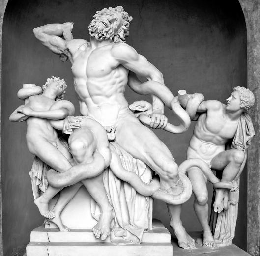 Группа Лаокоона — одно из самых известных произведений античной скульптуры — представляет жреца Лаокоона и двух его сыновей, борющихся со змеями. Эта мраморная статуя эллинистического периода была обнаружена 14 января 1506 года в центре Рима, на вершине холма Оппия — в гроте разрушенного дворца императора Тита, где некогда стоял «Золотой дом» Нерона. Скульптура была разбита на восемь частей. По приказанию папы Юлия II находку осмотрели архитектор Джулиано да Сангалло и великий скульптор Микеланджело Буонарроти, который определил, что статуя выполнена из двух кусков мрамора.
