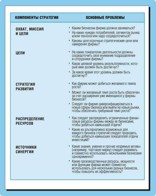 С каждым из своих подчиненных топ–менеджер обсуждает разные проблемы деятельности компании. Ну, а какие вопросы топ–менеджеру стоит обсуждать со своими маркетологами? Ответ в стиле: «Вопросы, которые необходимо прояснить, формируя маркетинговую стратегию компании», мало что объясняет. А потому попытаемся детализировать повестку такого совещания (см. рис. 5–1).