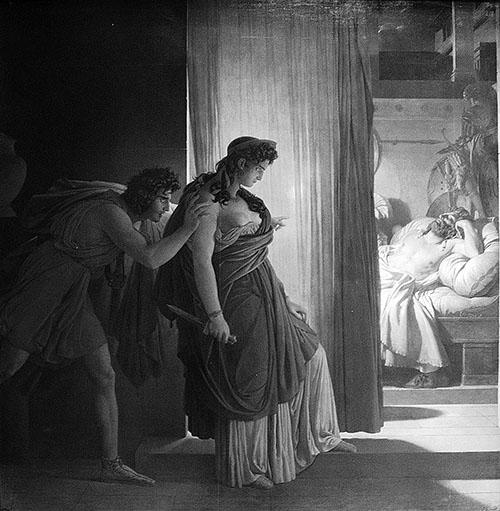 Клитемнестра колеблется перед убийством спящего Агамемнона. Художник Пьер-Нарсис Герен, 1817 г.