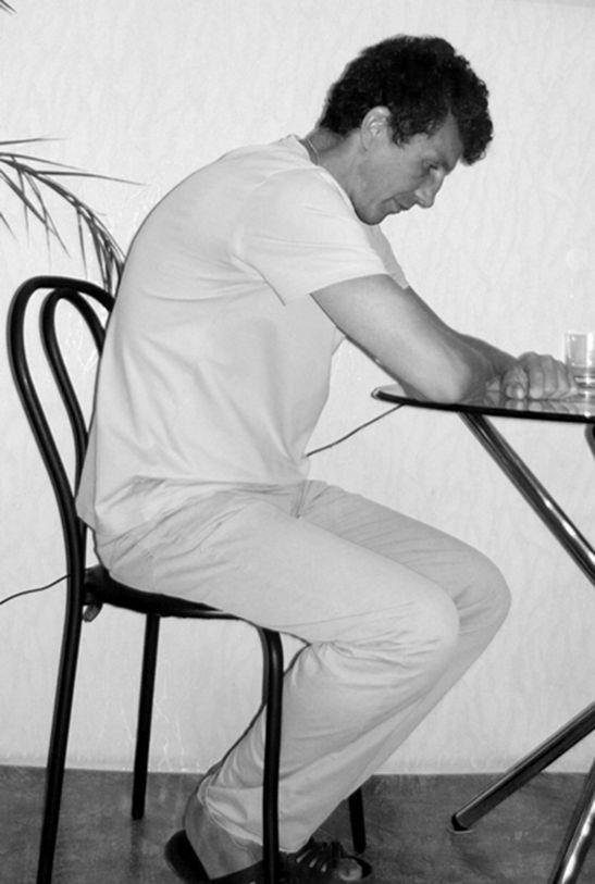 Исходное положение: сидя за столом в обычном положении – слегка сжатые в кулак руки прижаты к столу, локти разведены в стороны и лежат на столе. Ноги прижаты к полу (рис. 1.14).