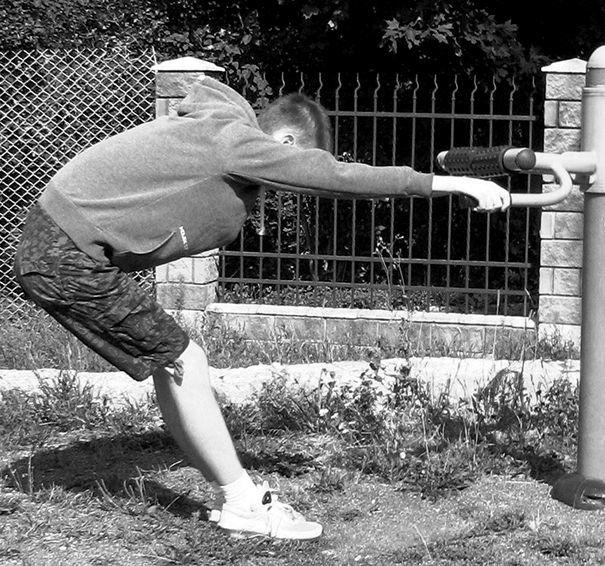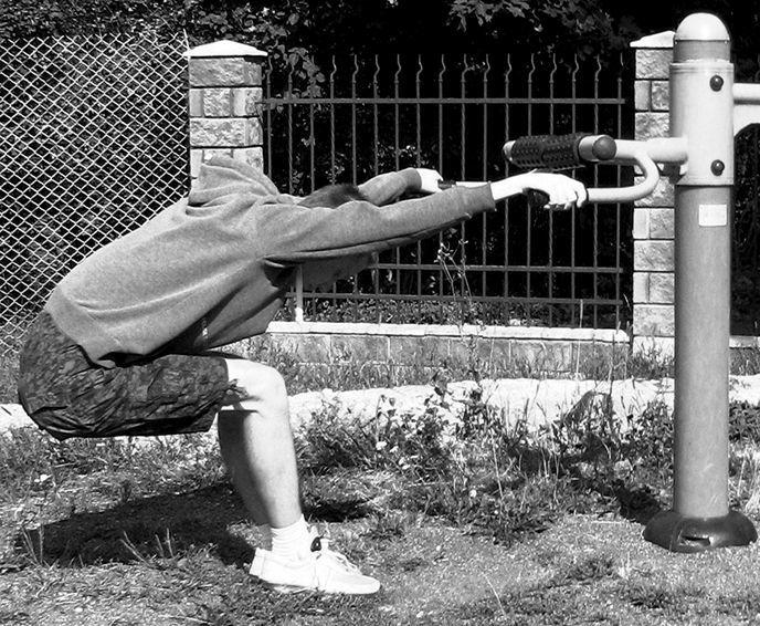 При выполнении прогиба руки остаются прямыми, колени не сгибать! Начните с наклонной опоры (наклоненного дерева, как на рис. 1.10), это создаст эффект микропрогиба.