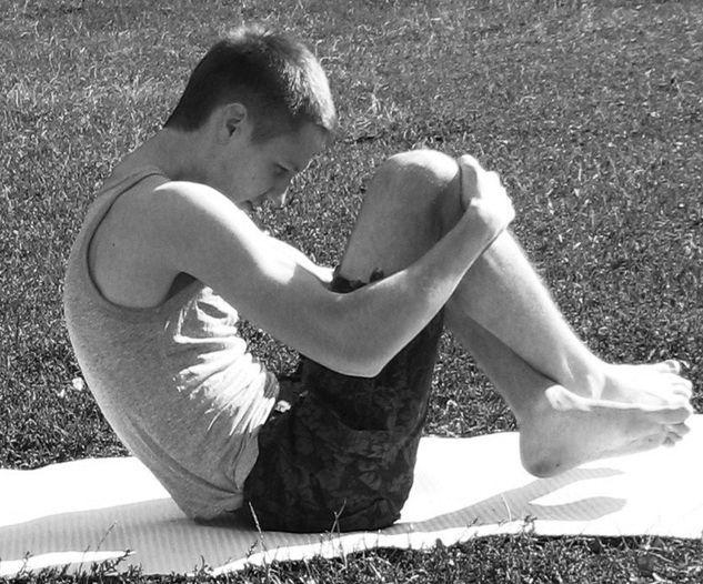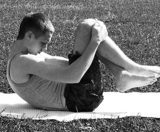 Исходное положение: сидя – ноги на ширине плеч. Кисти положить под колени, голову слегка наклонить.