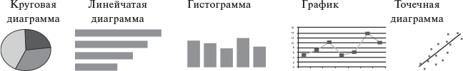 Каждая из представленных пяти диаграмм используется для разных типов сравнений. Рассмотрим их.