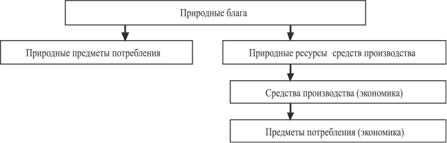 Такая объективная зависимость экономических благ (следовательно, экономики) от природных продуктов схематически изображена на рис. 2.