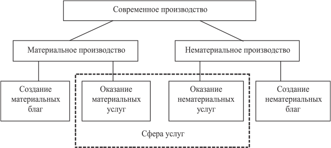 В современное производство органически входит особая сфера услуг, в которой занято до 2/3 всех работников.