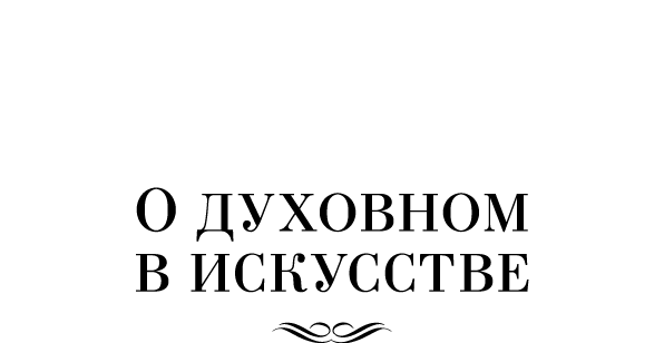 Эти два сходства нового искусства с формами искусства прошлых периодов, как легко заметить, диаметрально противоположны. Первое сходство — внешнее и, как таковое, не имеет никакой будущности. Второе — есть сходство внутреннее и поэтому таит в себе зародыш будущего. Пройдя через период материалистического соблазна, которому душа как будто поддалась, но все же стряхивает его с себя, как злое искушение, она выходит возрожденной после борьбы и страданий. Более элементарные чувства — страх, радость, печаль и т. п., — которые, даже в этом периоде искушения, могли являться содержанием искусства, малопривлекательны для художника. Он будет пытаться пробуждать более тонкие, пока еще безымянные чувства. Сам он живет сложной, сравнительно утонченной жизнью, и созданное им произведение, безусловно, пробудит в способном к тому зрителе более тонкие эмоции, которые не поддаются выражению в наших словах.